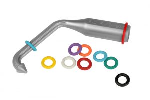 KiT Aplicador con 16 Anillas de goma 8mm es un Kit formado por un aplicador más 16 anillas de goma de Diámetro 8.0 mm para palomas, en colores rojo, verde, amarillo, violeta, azul, naranja, negro y blanco (2 unidades/color).